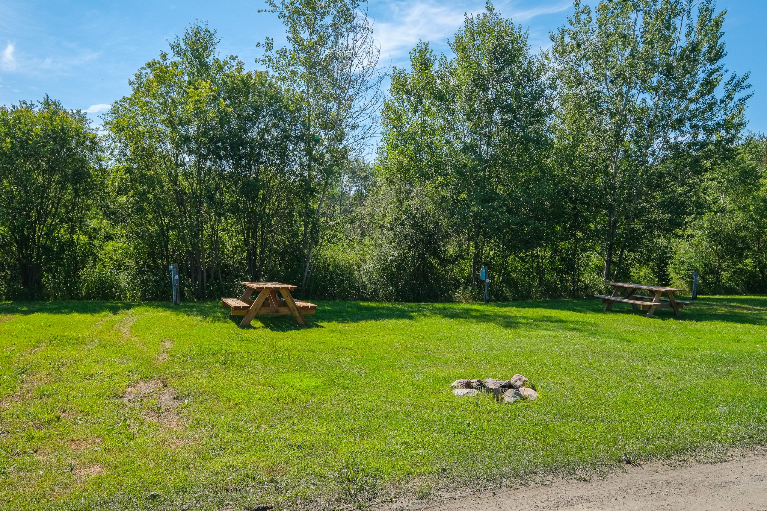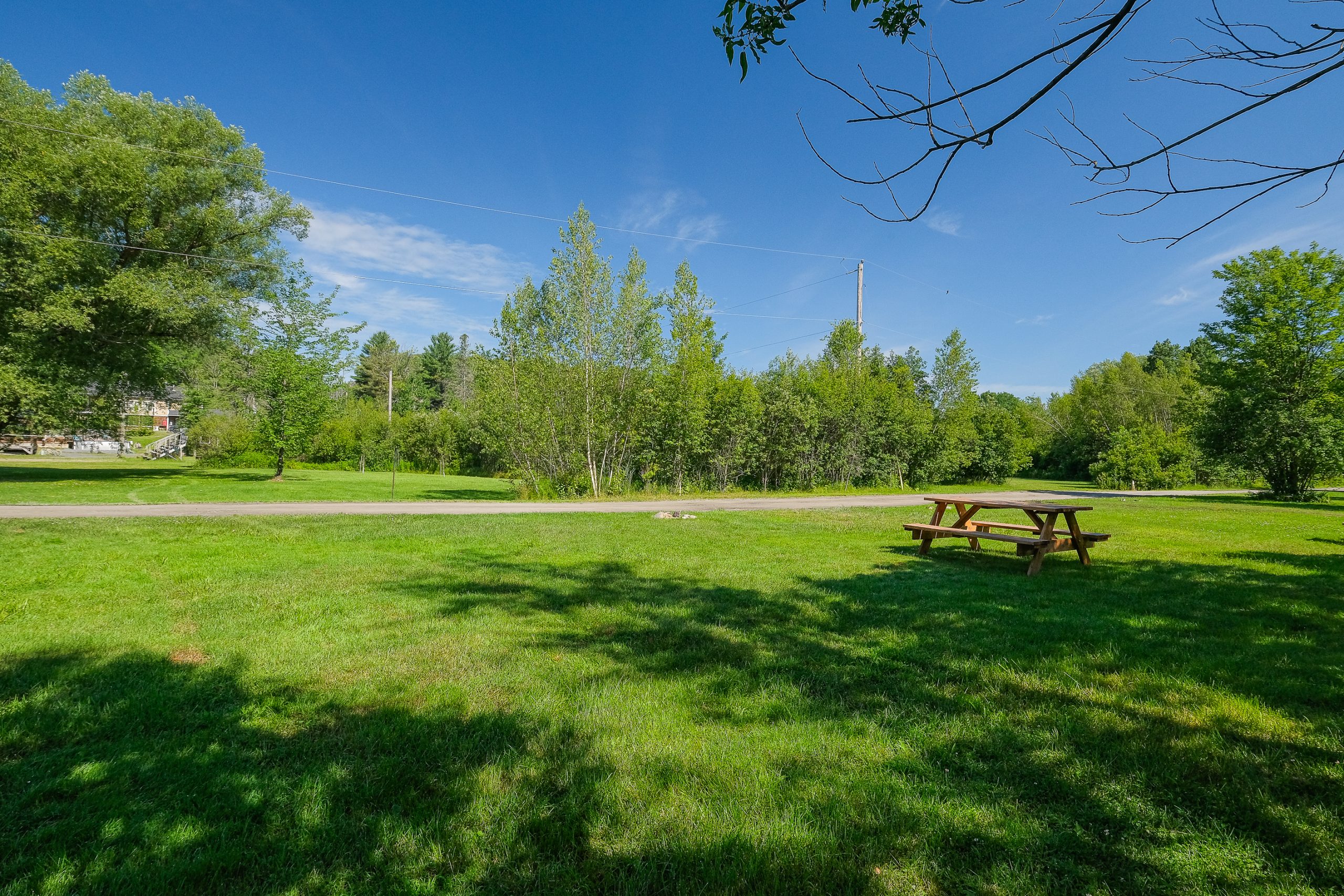 Terrain entièrement gazonné, plein soleil, 1 voisin de chaque côté seulement.